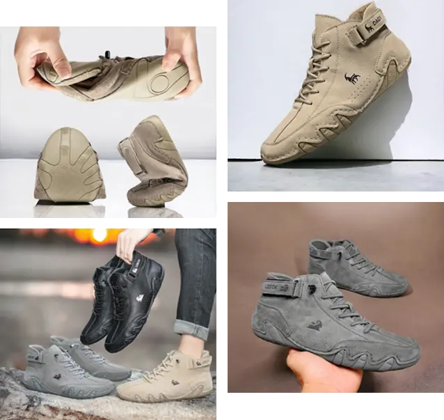 Våra sulor ger inte bara utmärkt grepp på olika underlag, utan bidrar också till förbättrad hållning och smärtlindring i knän, höfter och rygg. Dessa egenskaper gör skorna idealiska för både daglig användning och aktiva utflykter.