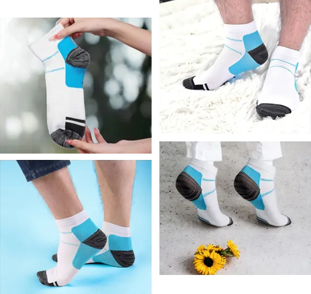 Ortho Kompressionsstrumpor ger riktat stöd vid viktiga tryckpunkter på fötter och anklar. Detta hjälper till att lindra smärta och ger komfort under dagliga aktiviteter.